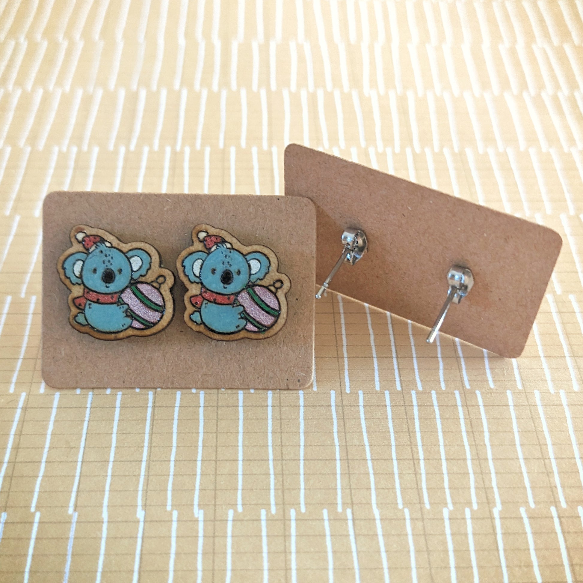 Add a touch of holiday cheer to your wardrobe with our Festive Koala Christmas Earrings. These delightful earrings feature an adorable koala bear adorned with a festive Christmas hat and holding a bright ornament. Lovingly laser-engraved and hand-painted in soft shades of blue, pink, and red, these earrings perfectly capture the joy and warmth of the holiday season with a uniquely Australian twist.